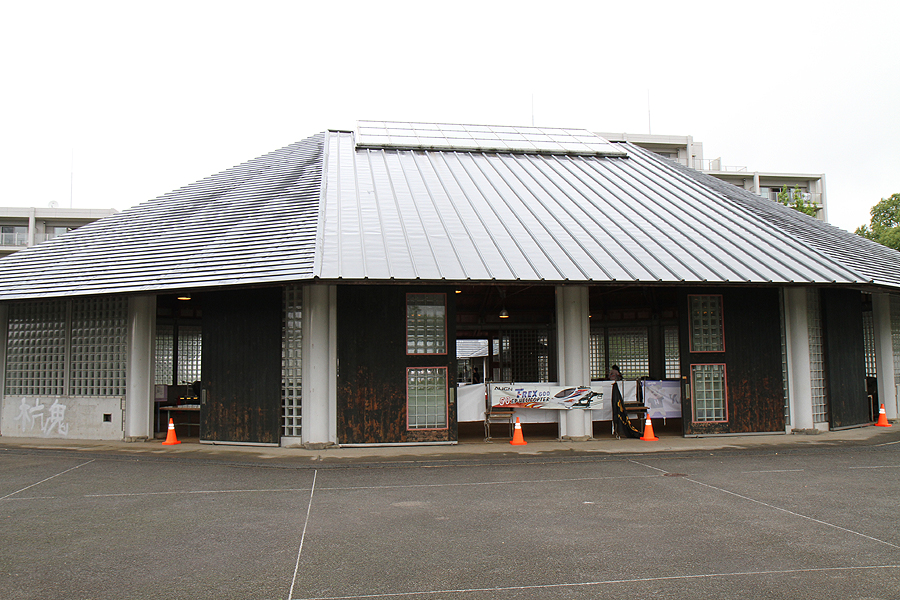公園内の屋根のあるスペースでフライトできる好環境で実施。