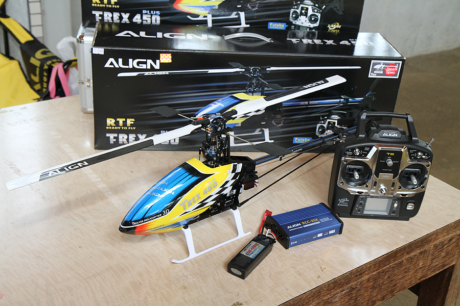 ホバリング調整済みのT-REX 450 PLUSもデモフライト。